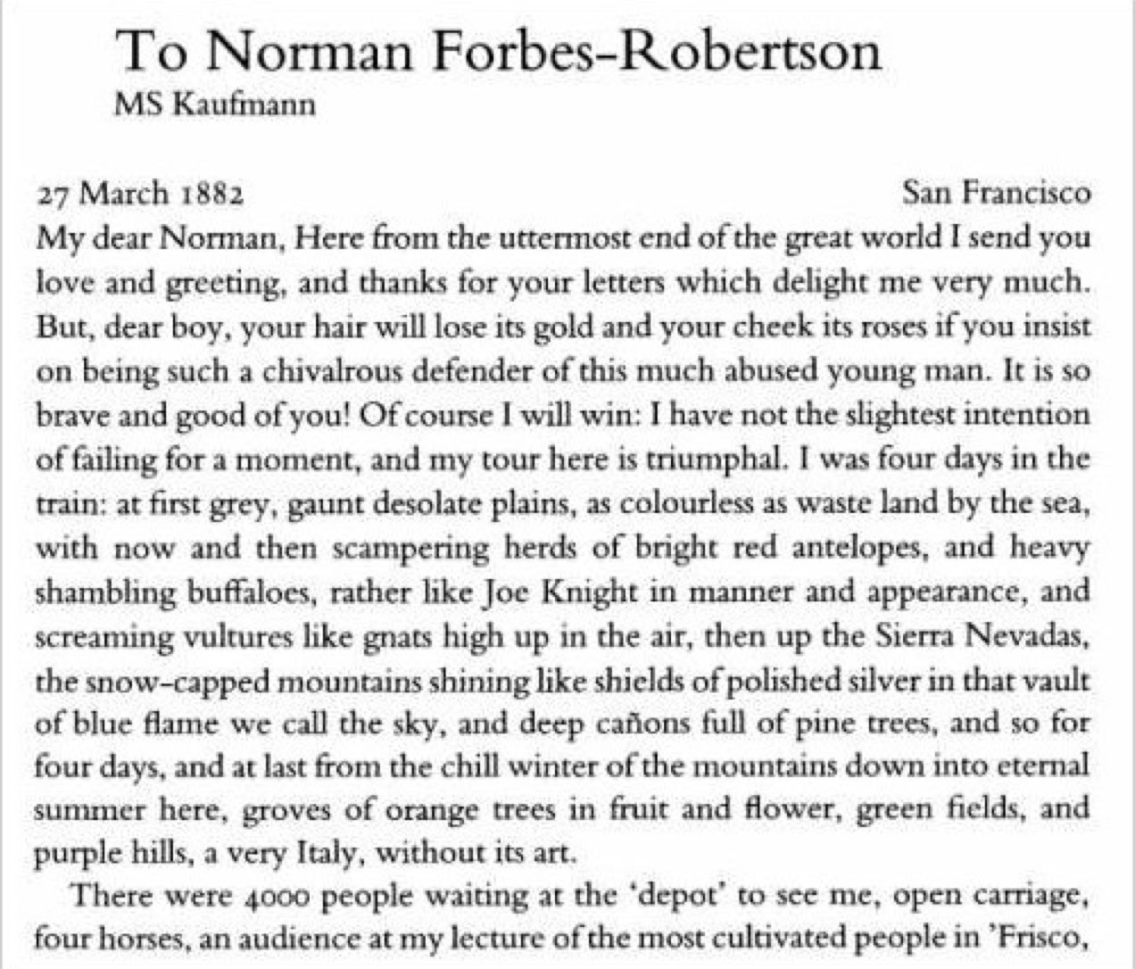 Oscar Wilde arrived on the west coast by overland train on Sunday, March 26, 1882.
