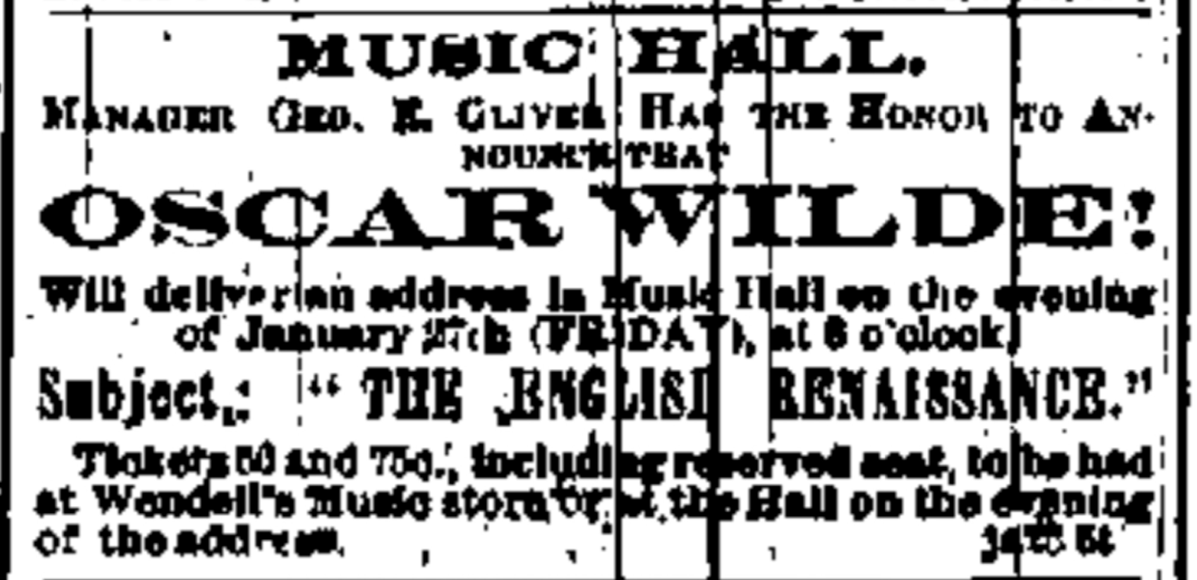 Mr. Oscar Wilde arrived in Boston Saturday morning . . . At noon Mr. Wilde received a caller from the Herald . . . said Mr. Wilde; "I lectured in Albany last night, you know."