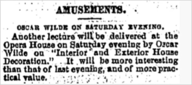 Wilde also appeared at another Tabor Opera House on the following evening when he lectured in Leadville, CO.