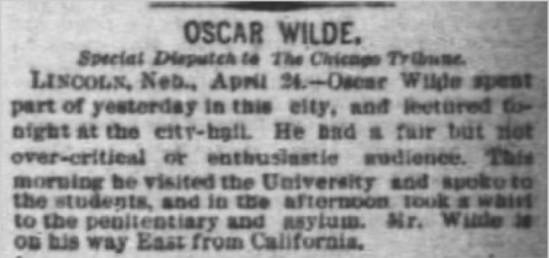 ‍He wrote to Helena Sickert about the visit the following day from his next lecture stop in Fremont, NE. In the letter, Wilde reported the whitewashed cells, hideous dress and manual labor of the prisoners, unknowingly presaging the circumstances of his own incarceration years later in Reading Gaol, where Wilde also was to fear for his sanity.