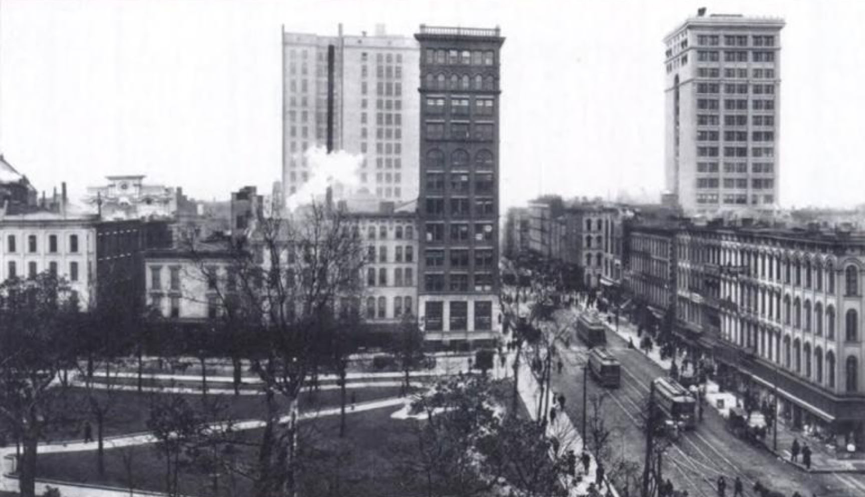 Gaston's to the left of the taller Porter building on the South side of Court Square (1910)
