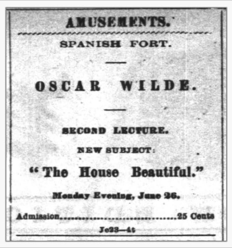 However, the news clipping opposite indicates that Wilde intended to reside at Spanish Fort and, if so, he would have stayed at the Spanish Fort Hotel. This seems likely.
