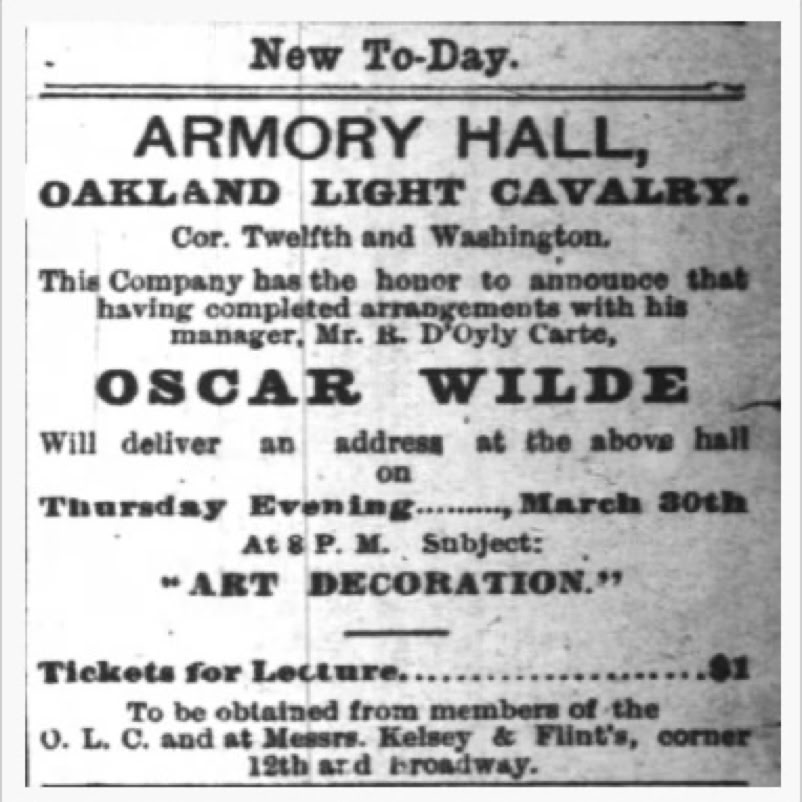 After the tour of the campus the two men dined in Armes' rented rooms in Oakland and clearly they made a connection for they met again before Wilde left the Bay Area: Armes' autograph book contains an manuscript copy by Oscar Wilde of his poem Requiescat, dated April 6, 1882, [San Francisco].