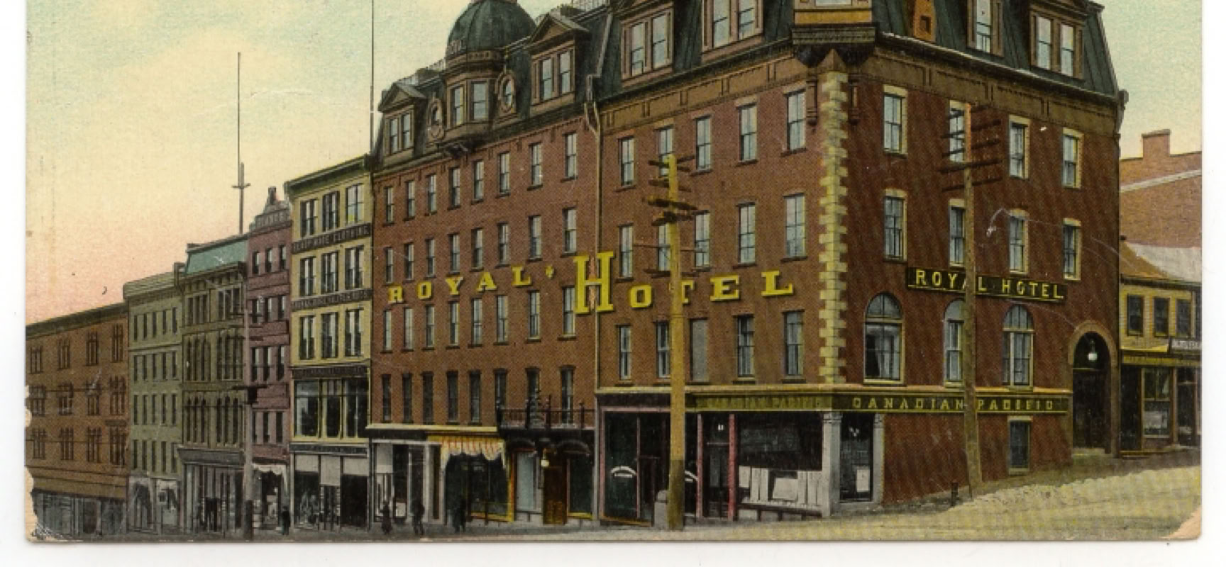 Mechanics’ Institute to the left of St. John’s Anglican church (the ‘Stone Church’), c. 1865.
